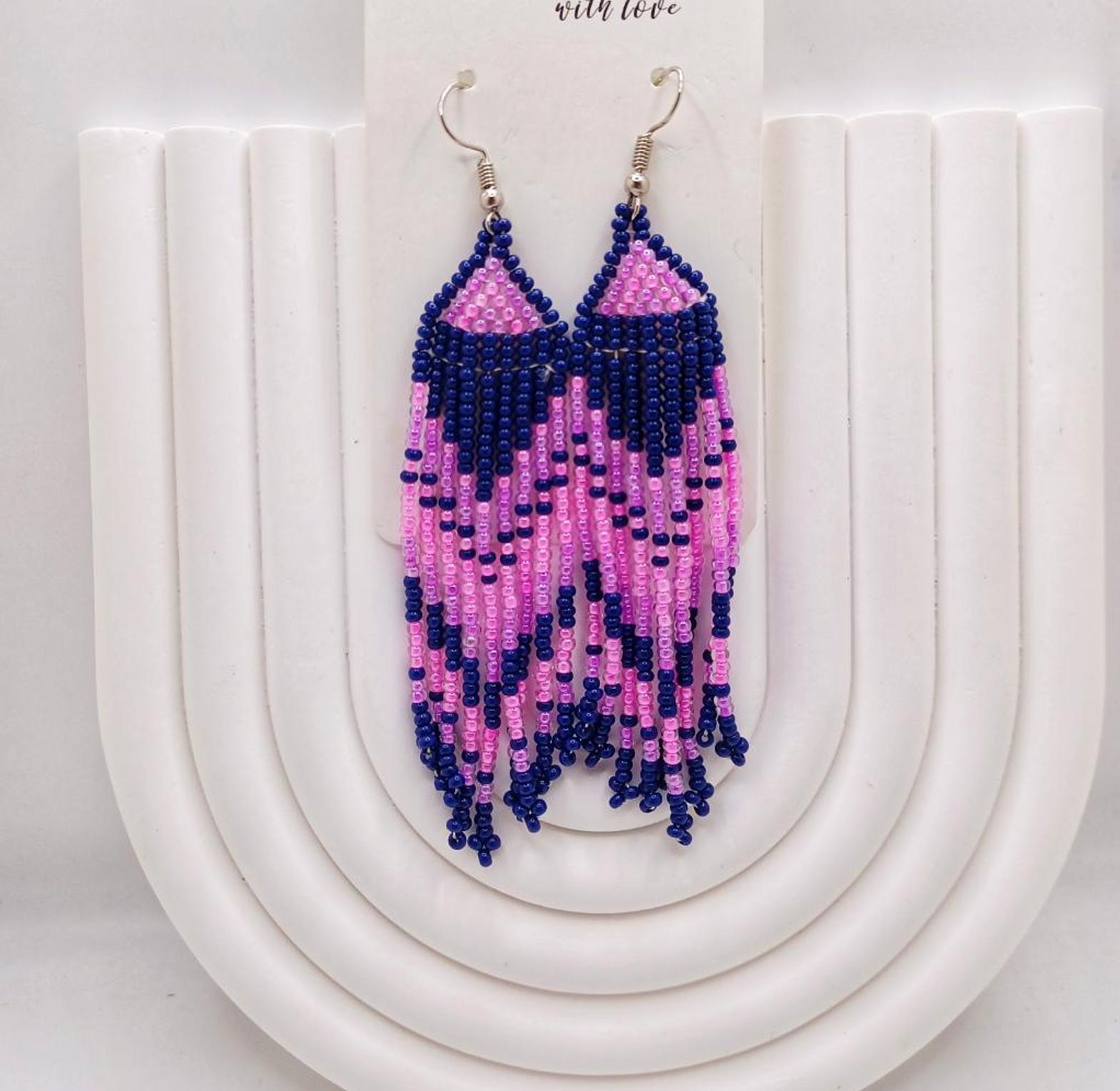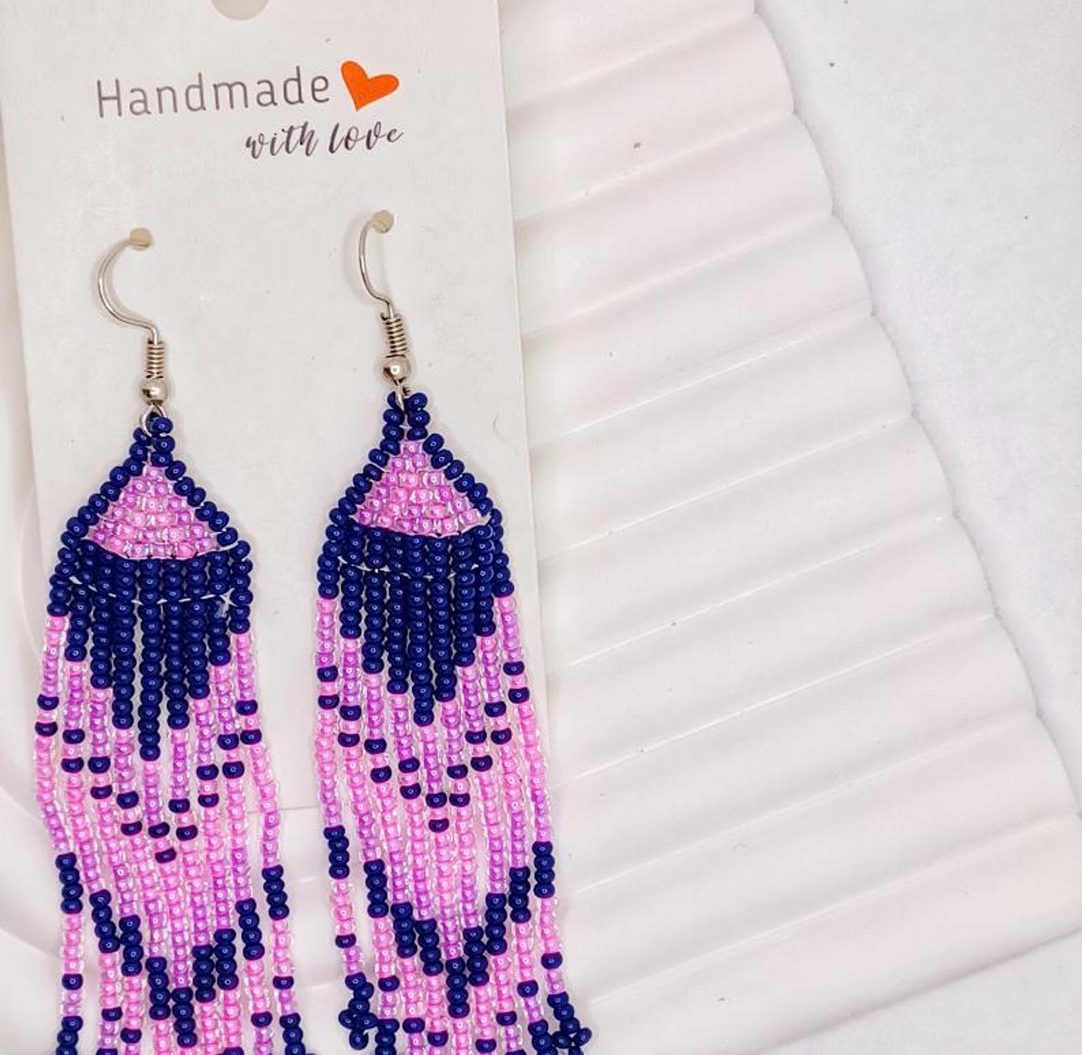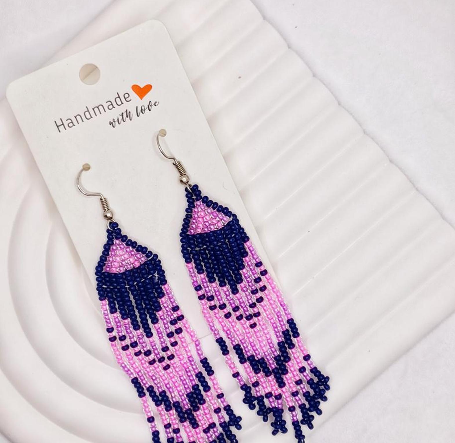 These beautiful, handmade beaded earrings are unique pieces of jewelry that add a touch of elegance and color to any outfit.