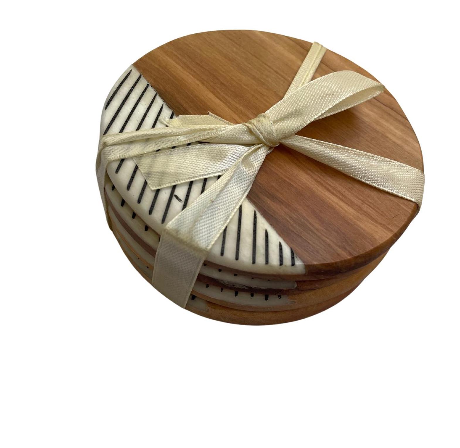 Protect your surfaces in style with our Bone & Wood Coasters, a perfect blend of natural elegance and functionality. Each coaster is handcrafted, featuring a stunning combination of rich wood and intricately inlaid bone, creating a unique and sophisticated design. These coasters are not only practical for safeguarding your furniture from drink stains but also serve as a beautiful accent piece in your home decor. Durable and easy to clean, they’re ideal for everyday use or special occasions, adding a touch of artisanal craftsmanship to your table setting.