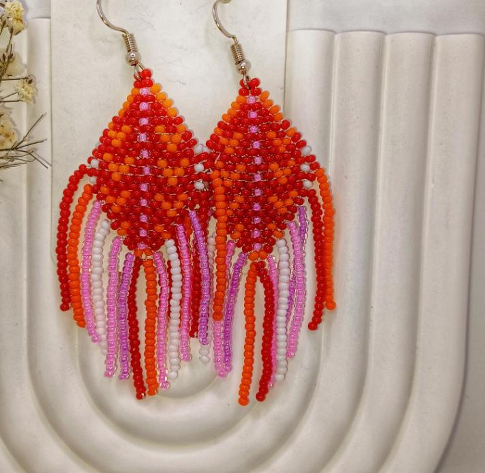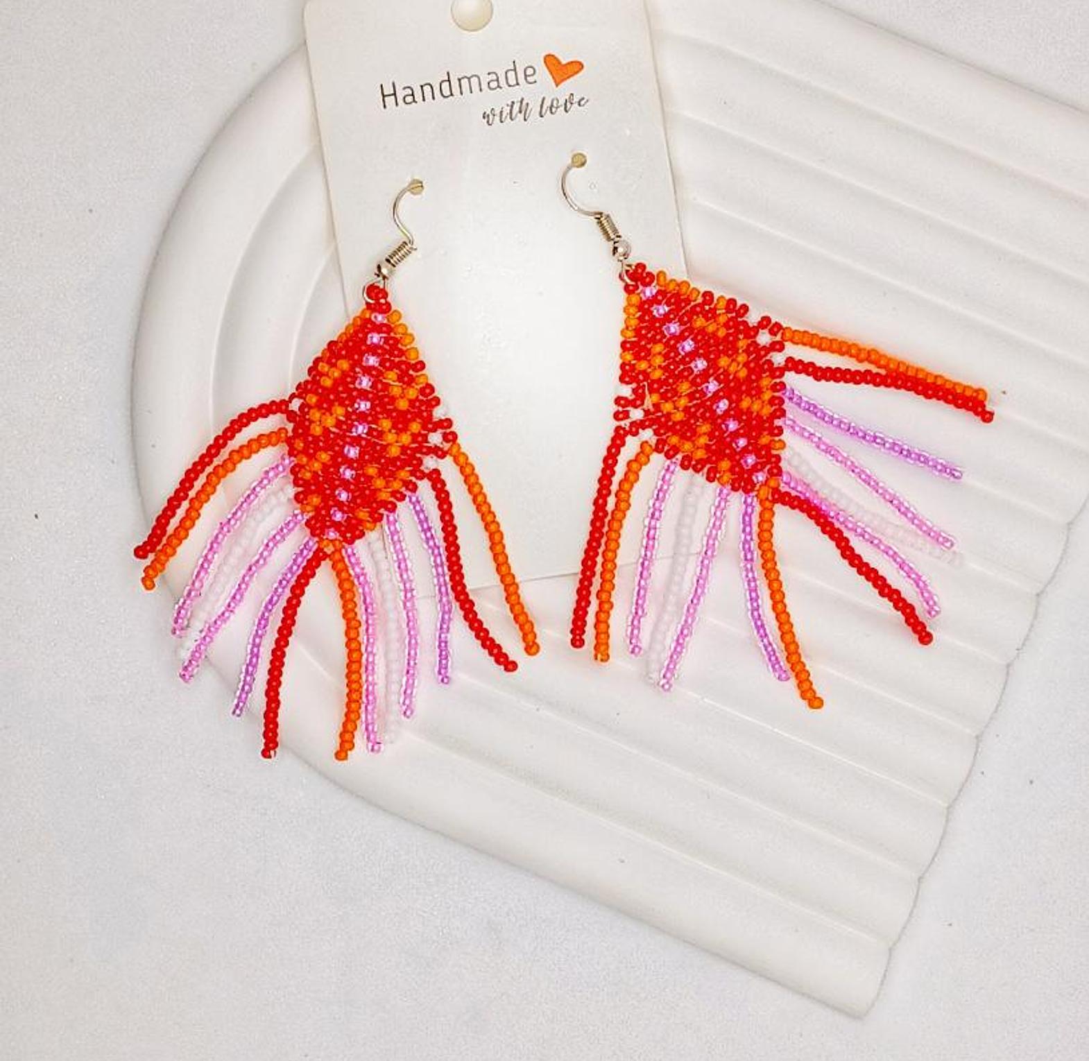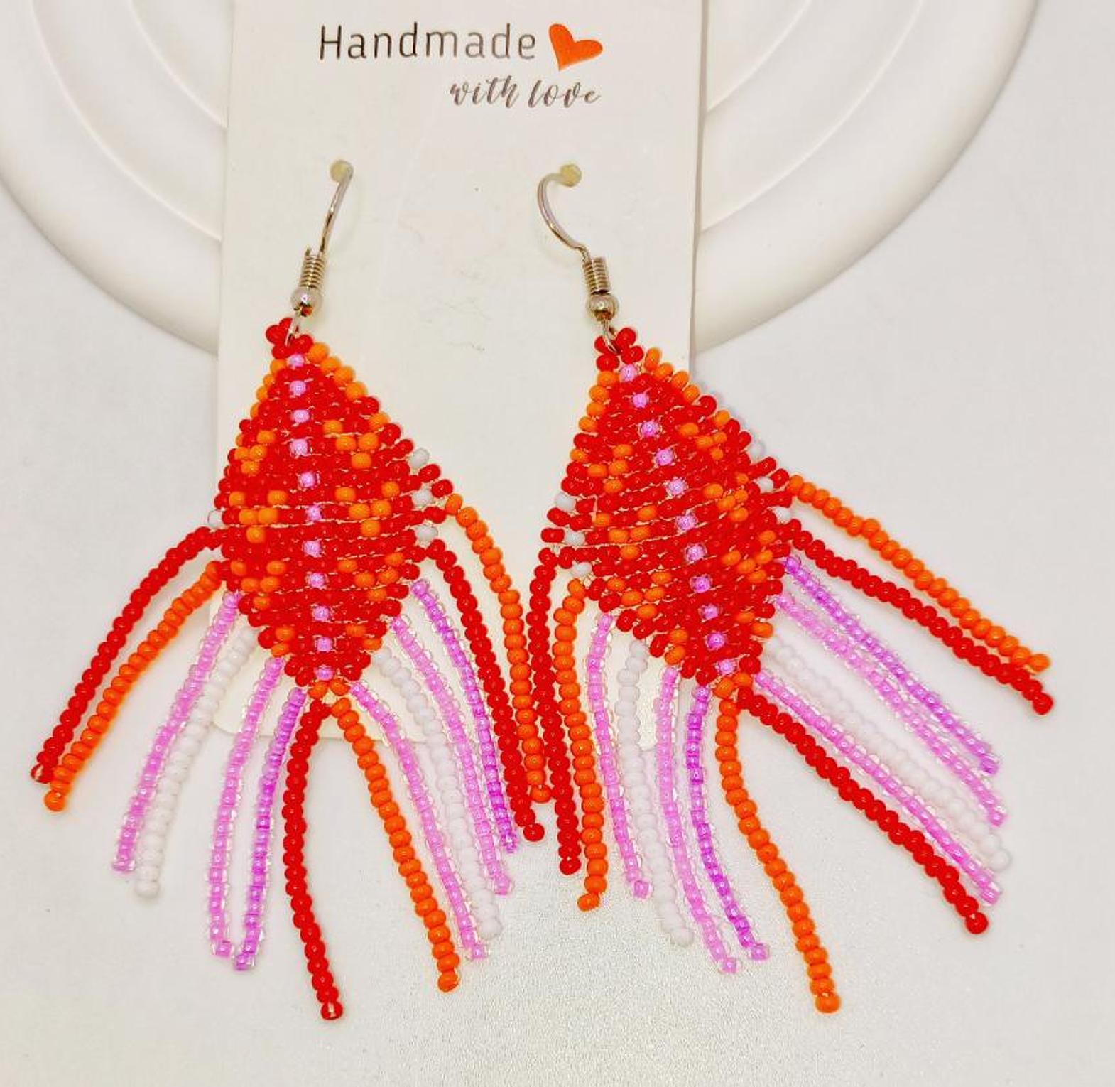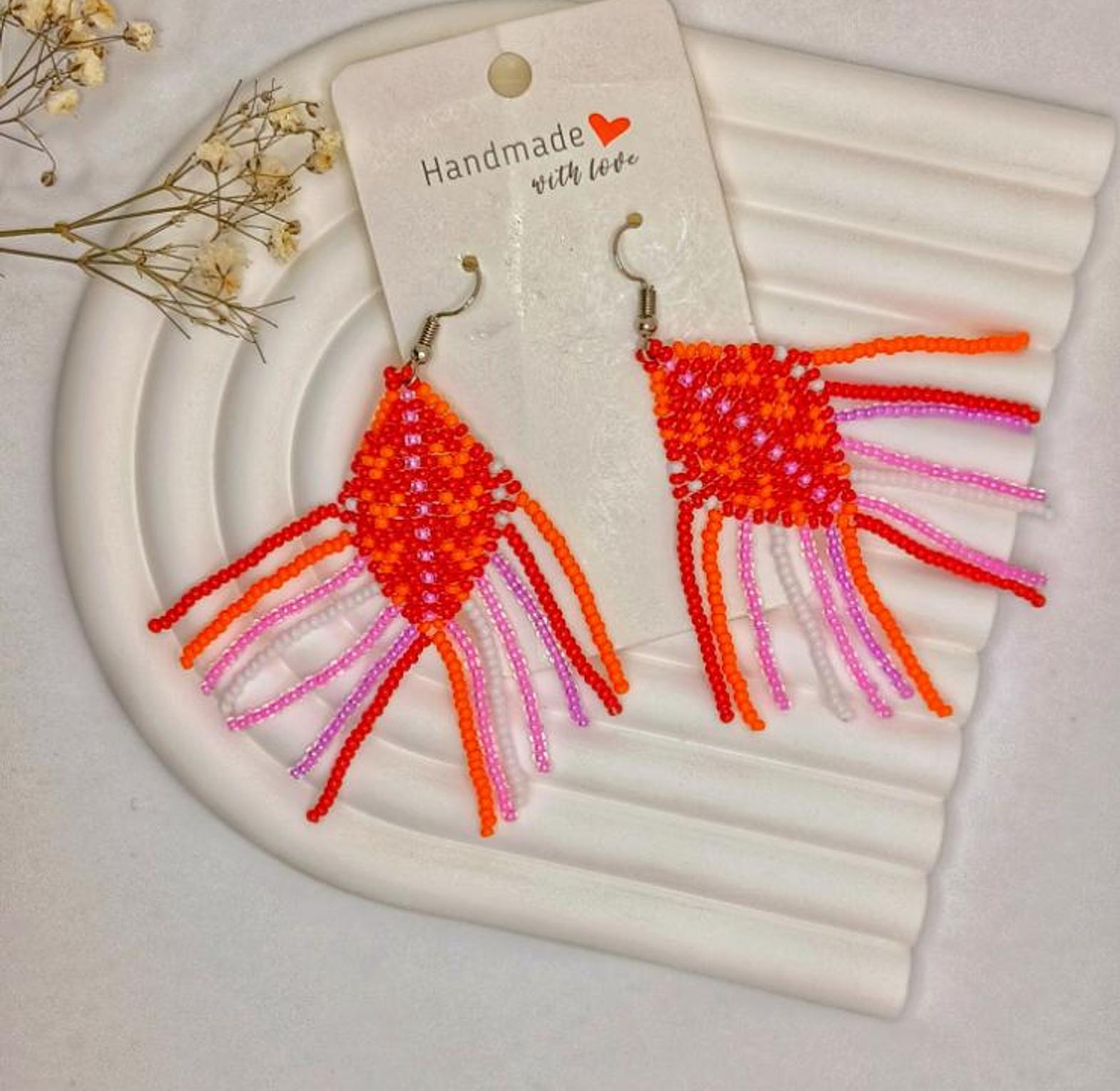 Handmade colorful beaded earrings are stylish and versatile accessories that add a touch of bohemian flair to any outfit.